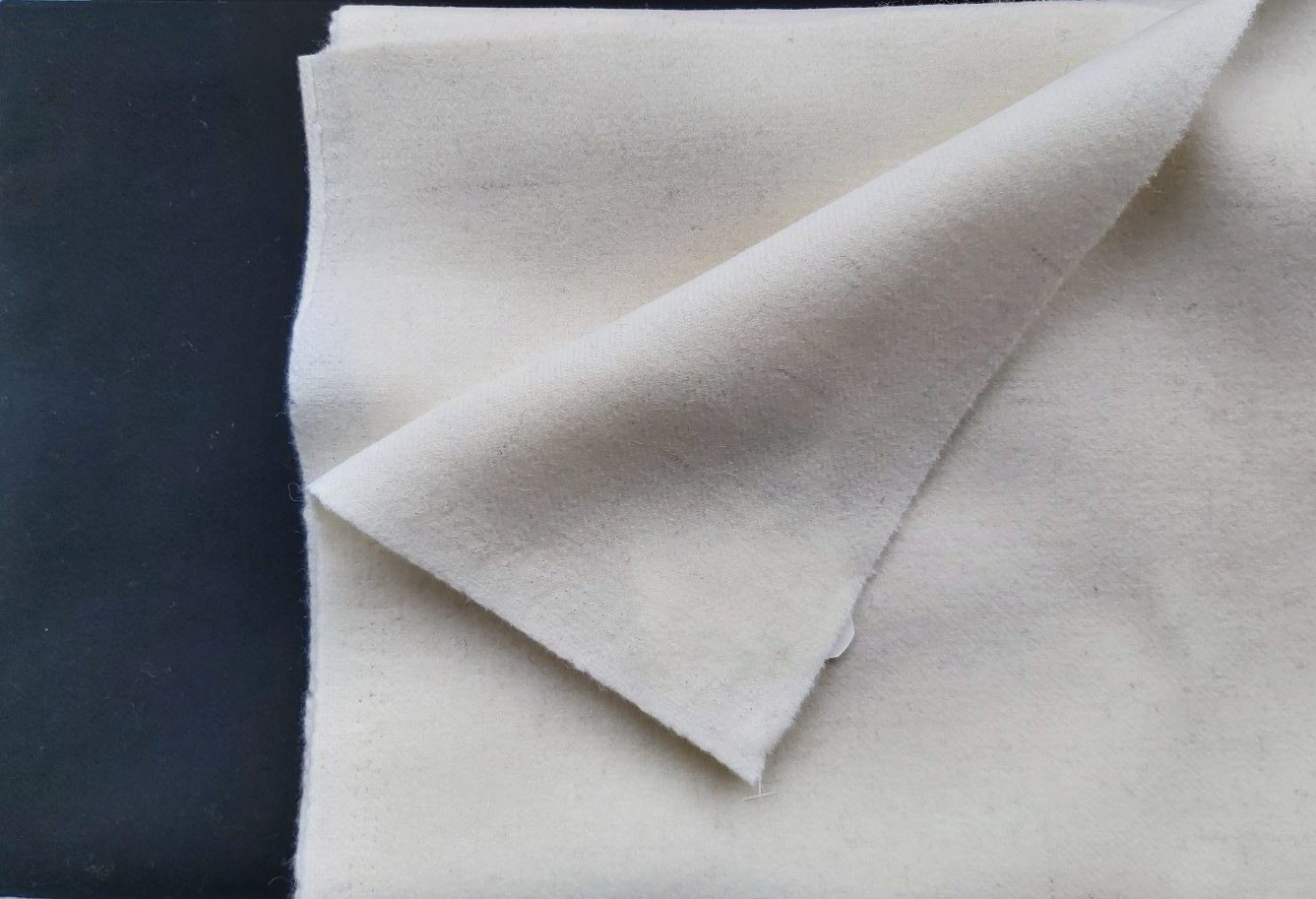 Klede i lettere kvalitet. 520/530 g. 100% ull. Bredde: 140 cm. Farger: hvit, sort. Pris per meter kr. 890. Her er pris oppgitt per 1 dm (10 cm).