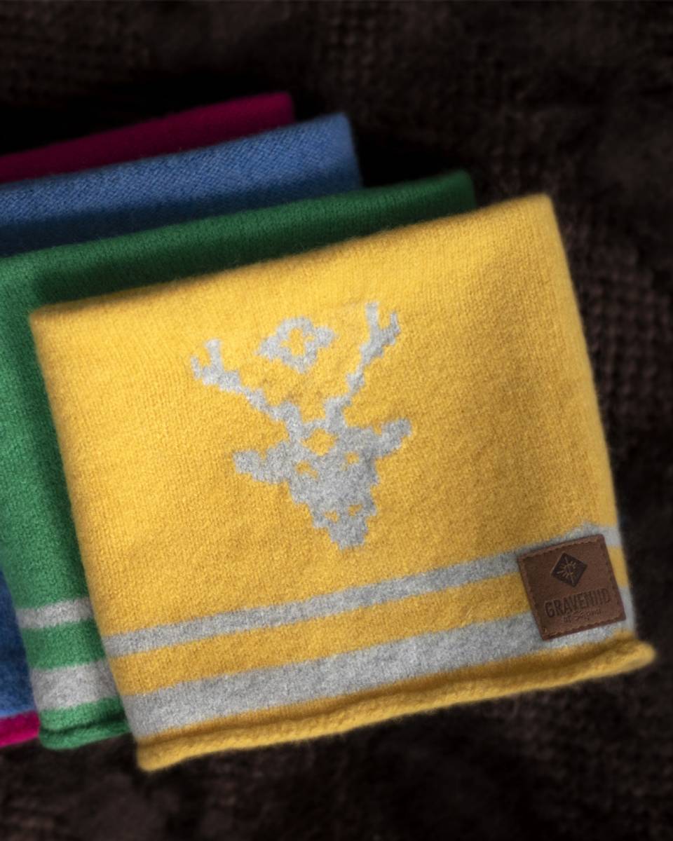 Barnehals i 100% myk merinoull. Motiv av reinsdyr.