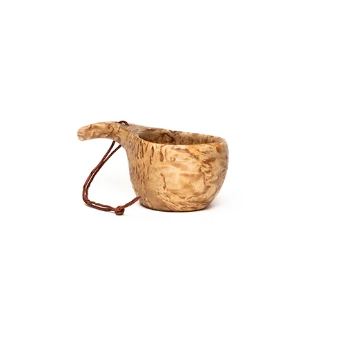 Trekopp av masurbjørk med snor av reinskinn fra Kero. To størreøser 0,5 / 1,0 dl.
